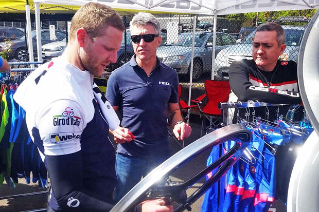 Steve Chapin from Castelli presented Slowman with his custom T1 Stealth Top, ideal for long course racing. These will be raffled at future Slowtwitch events this year.