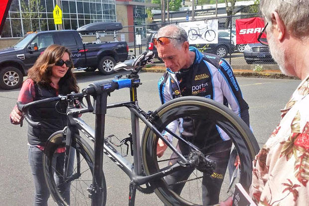The morning group ride at Athletes Lounge in Portland, Oregon was one of the largest we’ve seen at a Road Show yet. Owner Gary Wallesen makes a few introductions and gives last minute instructions before a group of 100-plus riders from a variety of local clubs.