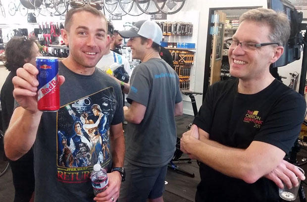Lifelong cyclist Aaron Lutze of Red Bull recently became a triathlete. Attendees were treated to fully stocked coolers of Red Bull flavors.