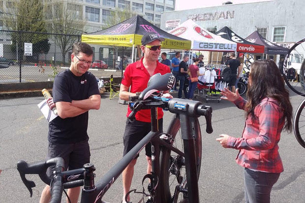 Cervélo was on hand so riders could demo their lineup of triathlon bikes. Every person at a Slowtwitch Road Show in 2016 to demo ride a Cervélo is entered in a raffle to win a P5 at the end of the tour.