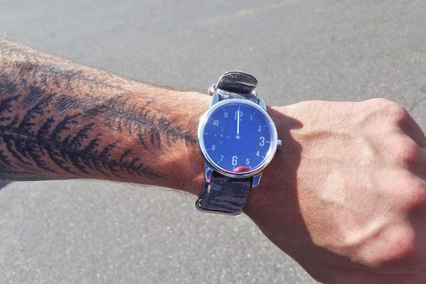 Professional triathlete Chris Boudreaux, a foundation member of the Athletes Lounge, showcases Greenhorn Northwest watches handmade in Portland.