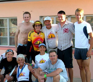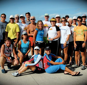 Tim: Every Wednesday night we have the Mad Dog Open Water Swim/Run/Cook Out at Pass-A-Grille Beach in St. Pete. This a famous tradition where everyone walks one mile down the beach to the Don Cesear Hotel (at exactly 6 PM) and swims back and then many go for a run of 3-6 miles and come back & shower. Then everyone gathers back at the shelter for food and drink and to socialize. There will at times be up to 130 people with many of the visiting triathletes and professionals coming when they are in town.