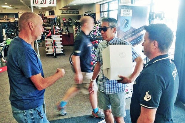 The happy winner of the grand prize drawing for the HED Ardennes wheel set.