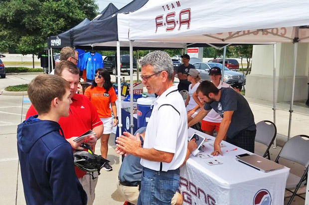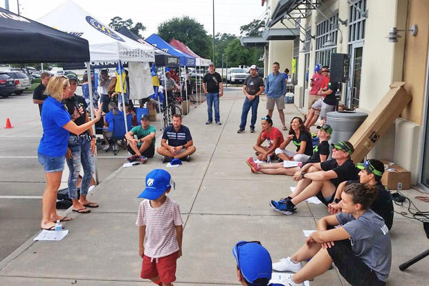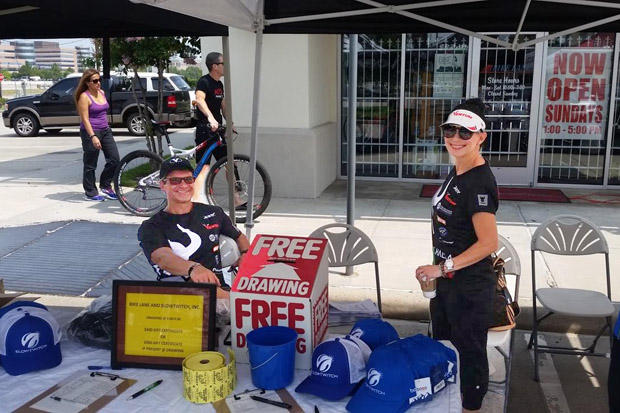 It takes a village to organize and produce these Road Shows. One week after competing at IRONMAN Texas, Steve Hardy and his wife, Ana, took signups for the raffle drawings throughout the day.