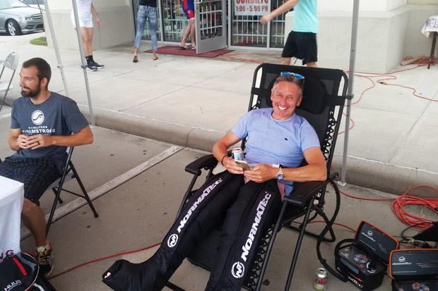 The Finish Strong booth was a popular stop as they had the three NormaTec recovery systems available for use.