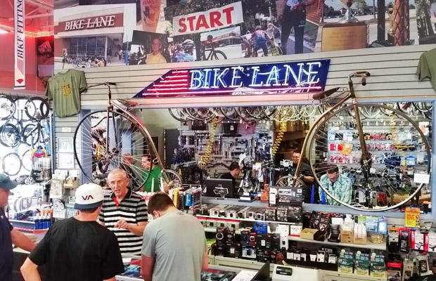 Herb Beimgraben (in striped shirt), owner of Bike Lane, was a gracious host for our Road Show stop.