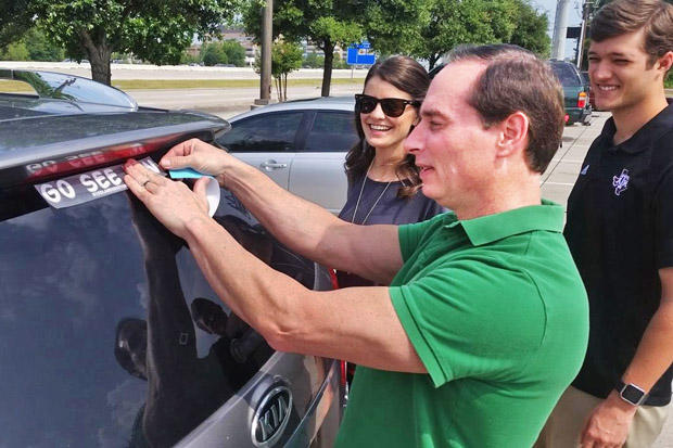 Ken Thurlow is the General Manager at Bike Lane and he has an ever growing flotilla of “Go See Ken” car window stickers around town.
