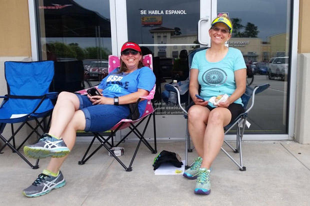 Amy and Gail from Conroe Triathletes, a local triathlon club, brought lawn chairs and stayed all day.