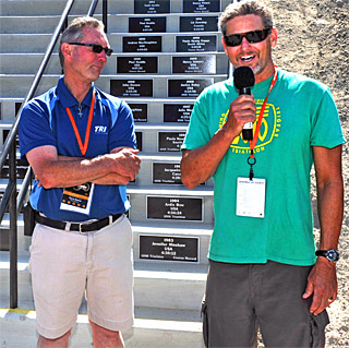 Ashlea heard about the new Wildflower Stairway of Champions that listed all the winners of the Wildflower long course triathlon. And she had heard Monty's story of how he had carved out a 10 minutes-plus lead on the bike in that first race back in 1983 – and how an unmarked turn a mile and a half into the run led him to run four extra miles. And how that left him crossing the finish line 8 minutes back. Her husband told her that the official winner Dean Harper acknowledged that he never passed Montgomery and Terry Davis had apologized to Montgomery and told him he would have won if not for the mistake. Monty' took his tough luck with a shrug and a wry acceptance of finality of the official results.