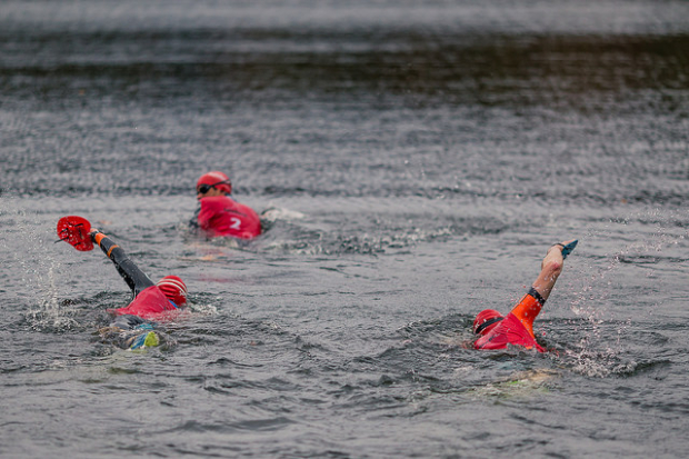 At the start at 8am most teams at the front of the field with ambitions of glory had opted to keep their wetsuit tops down.