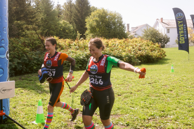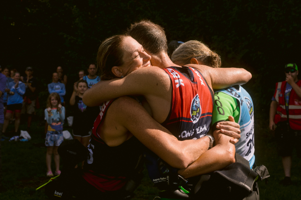 Inside of one mile to the finish Tom Peichel broke his hip but was determined to make it to the line. His teammate, Jamie Turner, piggy backed him the rest of the way, a technique she likely perfected during her time spent in the Air Force.