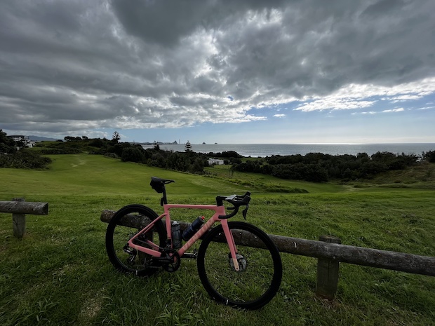 Race morning, I was lying in bed waiting for the alarm to go off and listening to the rain outside. Traveling west to race is great because I always sleep well and actually wake up early. We had been in New Zealand for almost a week preparing for the New Plymouth World Cup. It had been a nice time in the small coastal town with dirt running trails and a volcano in the backdrop. Come race day, the forecast was all rain and thunder. This was an “early” race for short course athletes, the women started at 11am. I was rooming with my teammate Gina and we basically ate breakfast and headed to the course. The moment we left the hotel on our bikes, it felt like a downpour. We were completely soaked, all we could see was gray sky in every direction, the roads were empty, and we just looked at each other like “thank goodness we’re at least doing this together”.