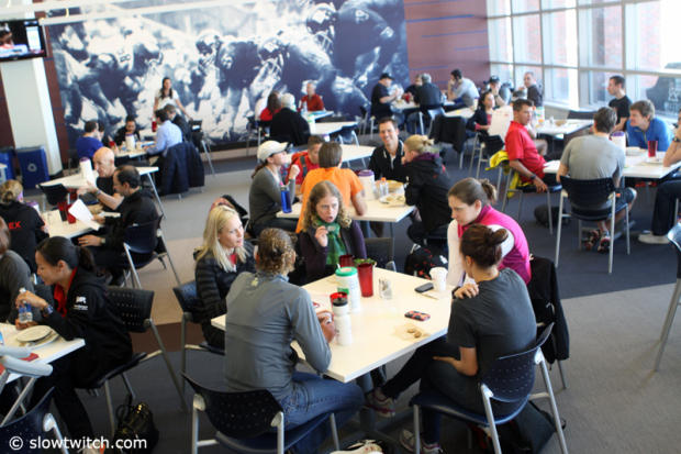 Just before noon the dining hall got very busy with Team Timex athletes and sales folks.