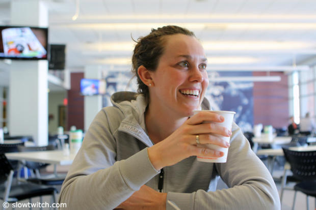 Jackie Arendt during a quiet moment in the NY Giants dining hall.