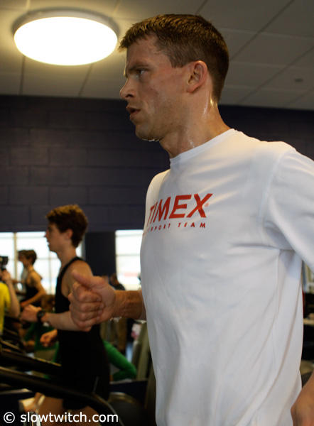 Roger Thompson gets feedback during the ventilatory threshold test.