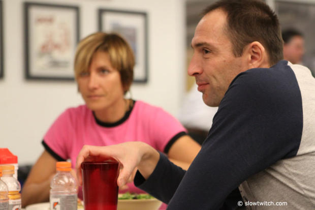 Original Ironman Dave Orlowski is quite an inspiration for the younger team members, with Barry Siff in the background.