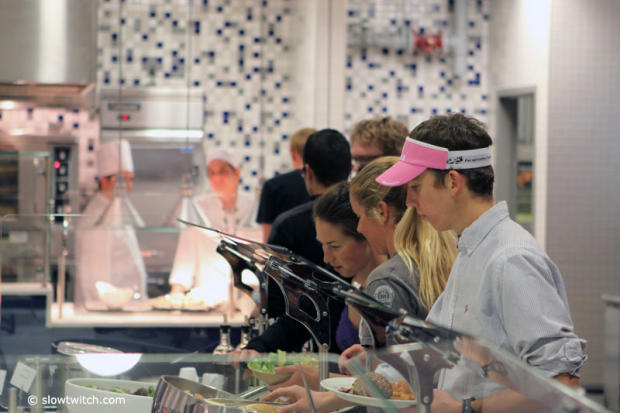 Team for dinner in the Giants cafeteria.
