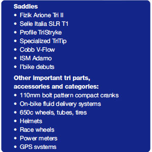 My admonition, then, is to take what I've presented and with the help of the exhibitor lists and floorplan here in the Event Guide and online, start making notes and a plan of attack. I've also provided some lists of important triathlon gear and accessory categories to consider as you grow your store's tri offerings in the sidebars. Then you’ll be armed and ready for Interbike’s aisles.