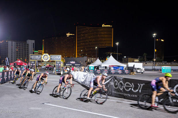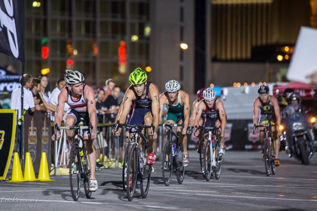 Under the bright lights of Las Vegas Elite men and women battled for a $30,000 purse in the Aussie inspired Super Sprint Tri Grand Prix.