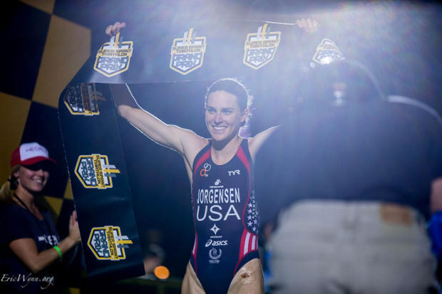 American Olympian Gwen Jorgensen grabbed the women's title and with it the US National title. Aussie Peter Kerr took the men's race and Eric Lagerstrom earned the US National title in an exciting sprint for the second place.