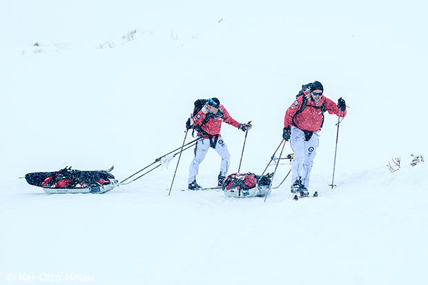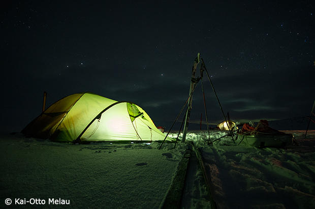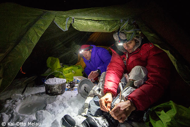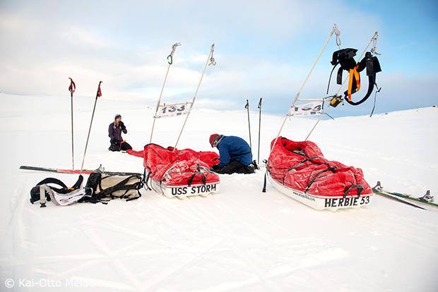 Trygve Markset and Håvard Hanssen of Team Amundsen Sports set up camp on the way to the win in the male team division. Their time was 22 hours and 26 minutes.
