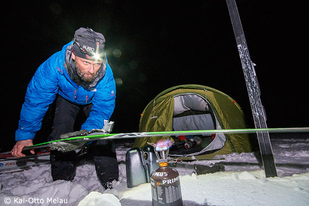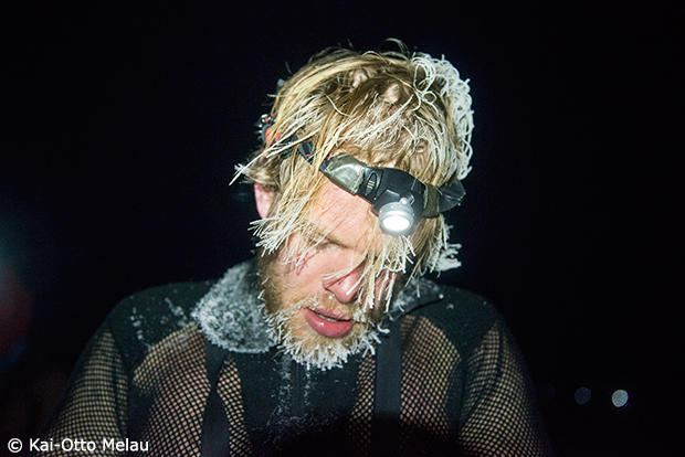 The attempt by Thomas Andersen to melt ice of the skis in the middle of the event. What he did seems to have worked out well as he won the individual event in 23 hours and 7 minutes. For the 5th time apparently.