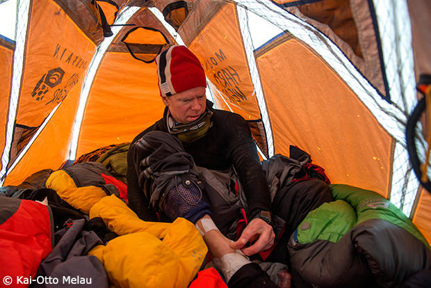 Even Hjartholm of the third placed mixed team Team Ailin og Even also set up camp and made sure his feet are fine.