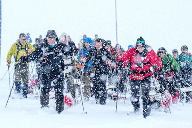 The American Alta Backcountry team of Daniel and Elaine Vardamis in pursuit of another team just ahead. The ended up finishing second in the mixed division.