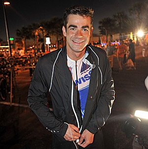 With his Olympic distance speed, Dirk Bockel remained cool enough to grab a pair of Mickey Mouse ears from his wife to wear and still hit the finish line with a 3-second margin over Luke Bell.