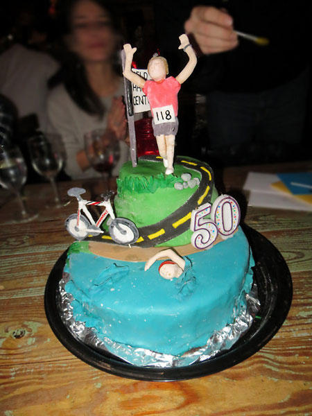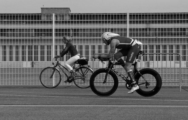 Jens Dahlman passing another “participant” on his way to winning the M30-34 age group at the IM70.3 Berlin. By Pie