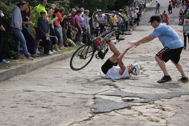 Pushing it up Alpe d’Huez just before the double ascent at stage 18. Amazing trip! By Matt Tanner