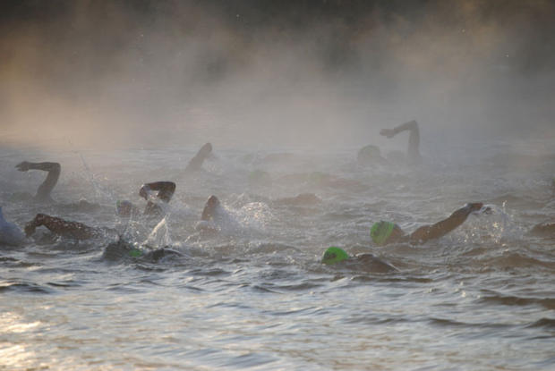 Frantic swim start of the Banyoles Half in Spain by Thomas Rohde