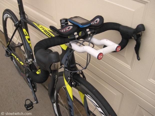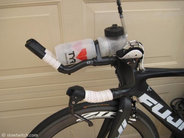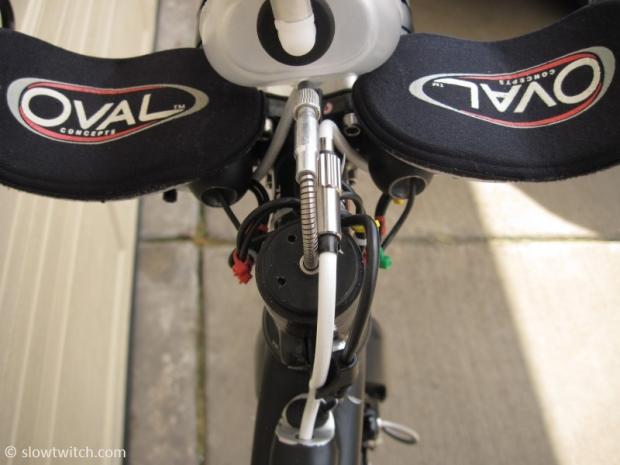 Sarah's ITU aerobar setup features Oval Concepts hardware and extensions, and a permanent custom aero bridge made by her husband Nate.