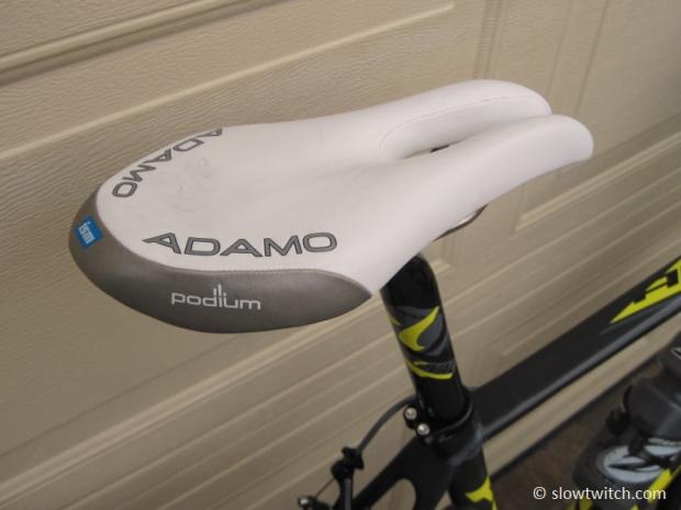 Sarah prefers the ISM Podium on this bike.