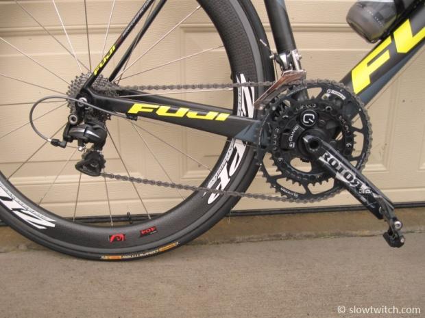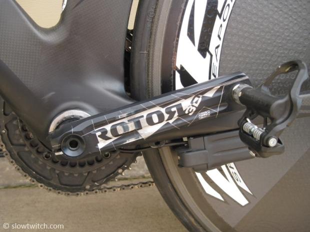 Shimano 7900 mechanical drivetrain, 172.5mm Rotor-Quarq crank, and Sampson pedals.