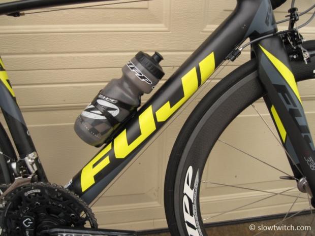 A Zipp bottle and cage are on the very-bright downtube.