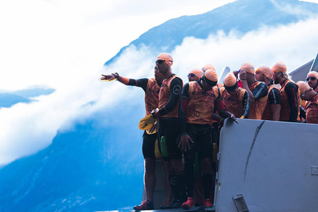 According to race director Thor Hesselberg the race attracted 77 teams but only 26 teams managed to avoid the cut-off and were able to pass the Dragon's Neck. The total race distance is 42km with 36km of running and 6km swimming. The swims comprise of 3 large fjord swims in 11-13 degree Celsius water and high mountain swims in even colder conditions. For the 36km of running athletes have to overcome 2,500 meters (8,202 feet) of elevation gain and close to 90% of the trails are very technical and challenging. There is also a 4444 step long wooden staircase that goes up 750 meters in elevation gain in a 1,500 meter stretch.