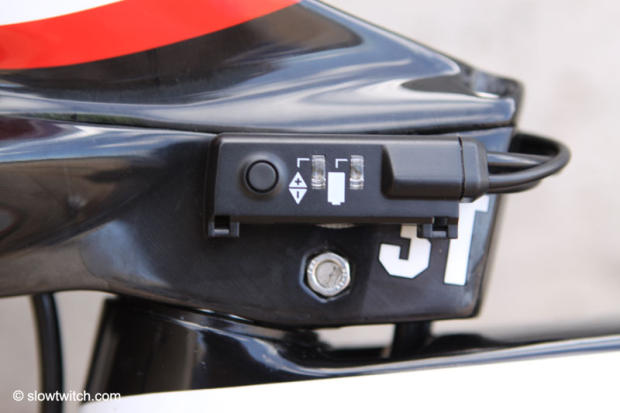 The actual Di2 battery is hidden in a compartment above the bottom bracket.