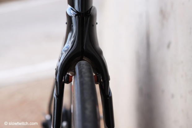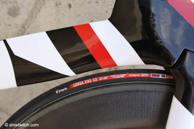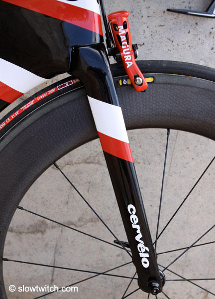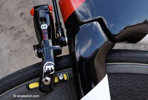 The closer look here shows that the brake featured here is also not stock. The RT6TT will come standard on the UCI legal P5.