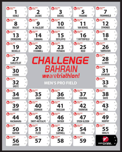 The 2014 GoPro Ironman World Champion Sebastian Kienle has the number 1 bib in Bahrain and would be closely watched by other Pros even if he had a 3-digit number.
