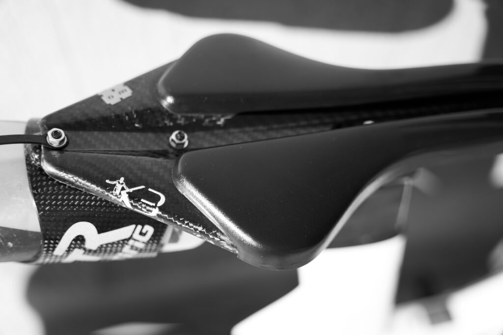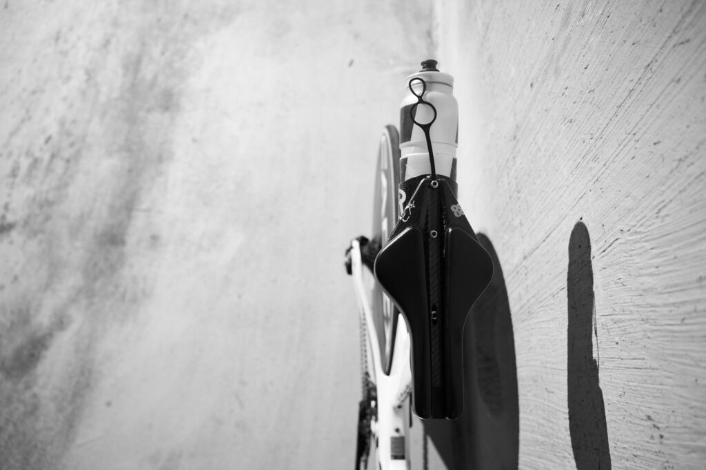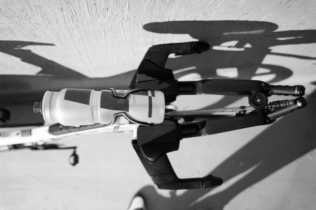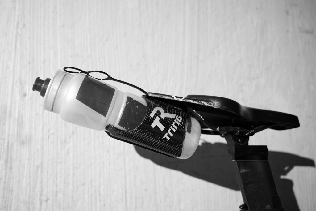 Rear hydration: TriRig carbon cage mounted to the wove saddle for his second bottle