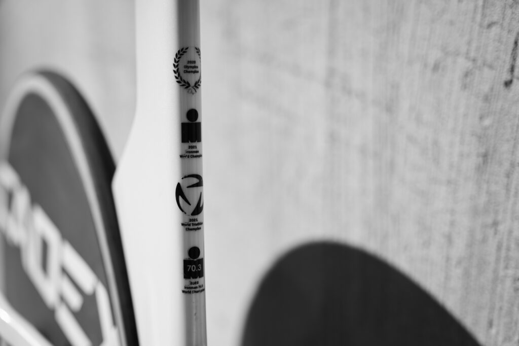 - Ironman, World Triathlon, and Olympic decals on the frame: Great reminders of the results.