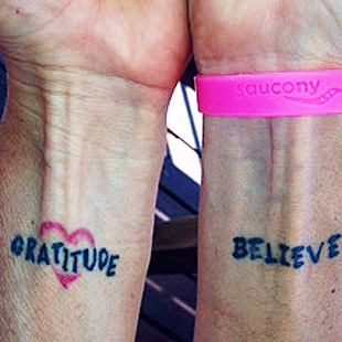 Siri: There are certain words I live by. I have them tattooed [on the inside of her wrists] Gratitude. Believe. Love would be a third one — but that is right here in the center [points to the her heart]. I like to live my life from a place of love and not fear because I lived by fear for so long. And I realize how much you can accomplish when you love what you are doing and believe in a goal.
