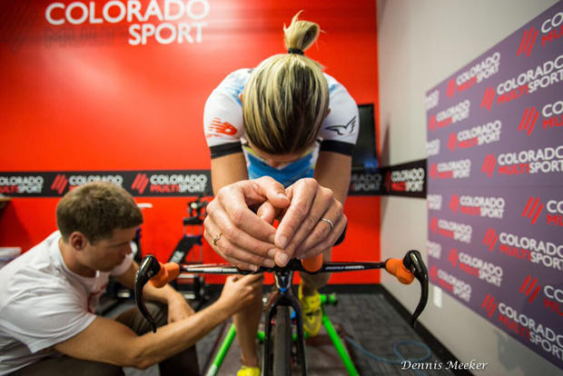 Mirinda Carfrae has been working with Mat Steinmetz of 51 Speedshop to improve her bike position for six years now. She was recently at Colorado Multisport working on her new bike with Mat, and it seems that this relentless pursuit of a perfect fit will continue indefinitely.