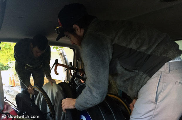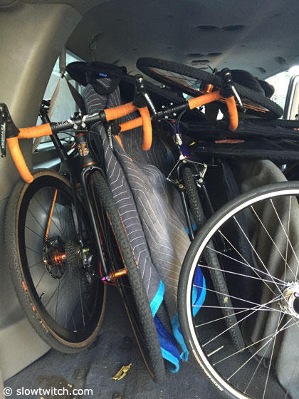 Two bikes for each athlete and lots of other gear make the trip to St. Louis.