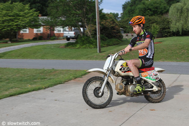 The moto is not really the way to go to work, but shows the bike handling skills he has.