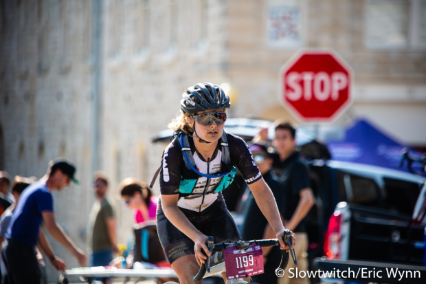 Kristen Legan of Boulder, CO started her ride into the sunset as she prepped for her all-nighter.
