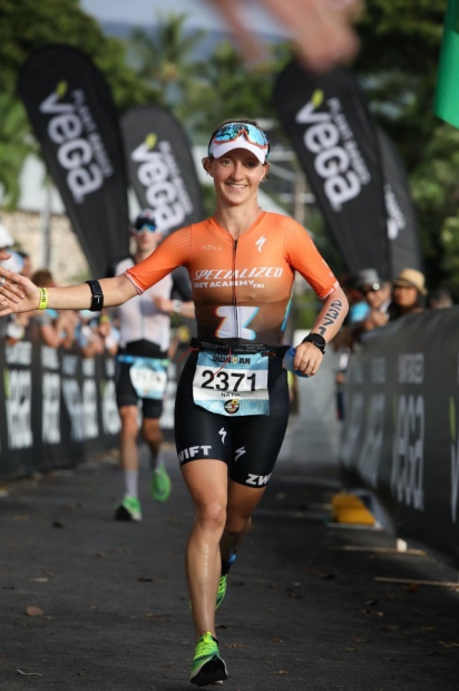 Natia: Ah man, that was incredible! I saw Johan from Specialized just before I entered transition on race morning and he gave me a big wave. I found Sarah (True) as I was exiting and gave her a big hug. Going up Hawi it was easy to spot the guys flying down and one of them gave me a big cheer. On the run, Ruth and I were cheering and high-fiving each other. It was just so much fun! We had Tim (Don) and the other Zwift Academy staff members scattered out on the course cheering for us. It really made the day a little easier and so special.