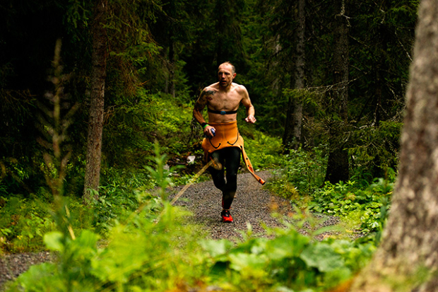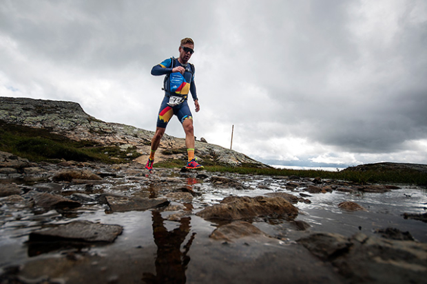 Espen Rygge from Norway on the way to 21st place in 14:01:06, and big thumbs up to that cool kit.