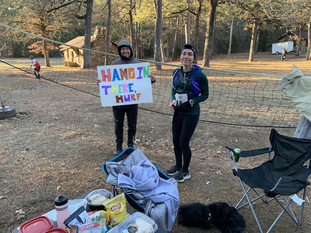 Molly: It kind of felt like fate, honestly! I basically was just searching for a 100-miler in February—so that I could have the rest of my season to do ‘shorter races’ and just get a 100-miler out of the way. I needed it to be in Ontario (where I live), New Jersey (where my parents are), or near Arkansas… Cyclocross World Championships were in late January in Fayetteville, AK, and I was going to be down to cover them as a cycling journalist. Added to that, my ultra-running best friend who I’ll be pacing at Western States later this year had just moved to Arkansas for work and was able pace me. The Outlaw 100 was just a couple hours from where we were in AK, and it was two weeks after Worlds, so I’d have time to get down there, train, taper and be ready to race. So, it was a work trip, a visit with my running bestie, and a chance to race all in one.